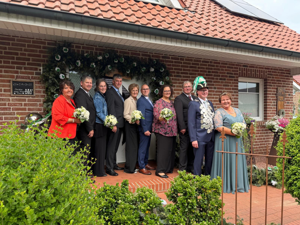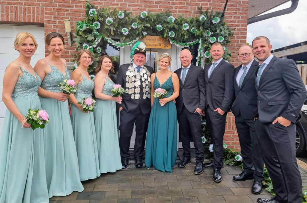 Throngefolge v.l.n.r.: Johannes und Siliva Kamp, Frank und Karin Prein, Martin und Marion Bramsmann sowie Jürgen und Annette Herding